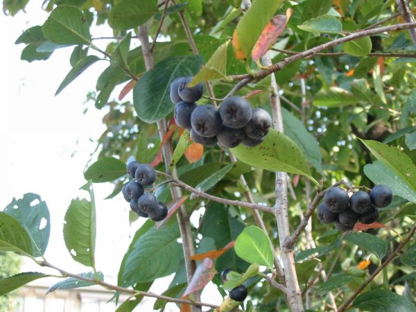 夏に黒実のなるアロニア メラノカルパ(Aronia melanocarpa)種。