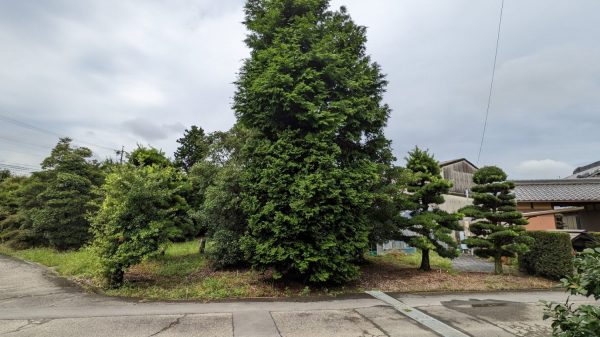 社長に確認したところ、移植や伐採をする植木が少ない方がいい、と指摘をされたので、改めて写真手前の道路脇を切り開く計画となりました。