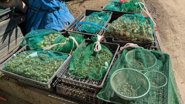 なかには生育の悪いものや割れてしまっているものもありますので、生育が見込める種だけを集めていきます。